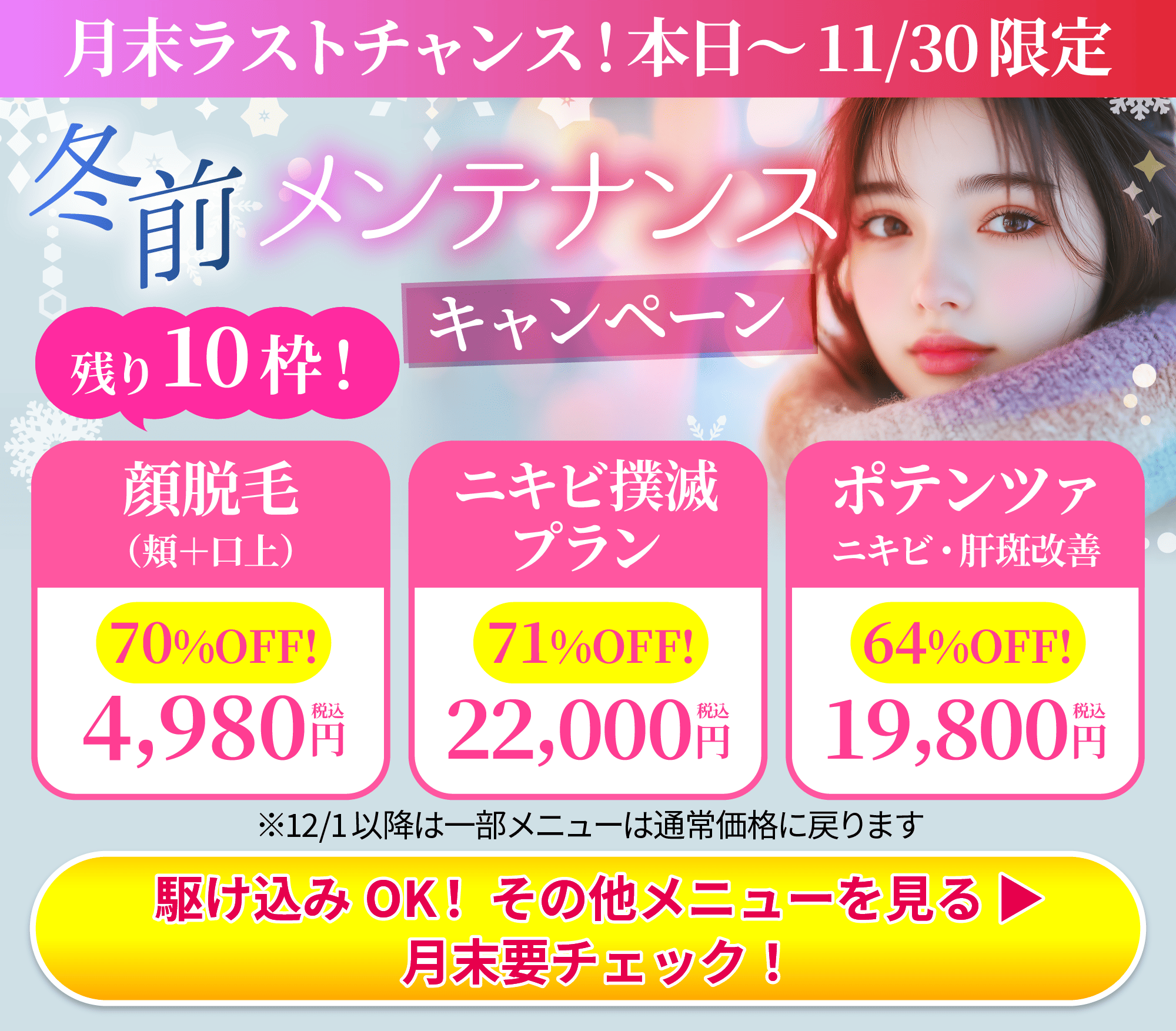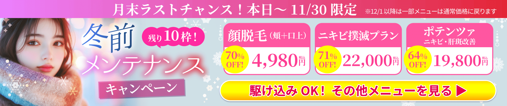 今だけ無料肌診断! 美容医療の経験が豊富なスタッフが、一人一人にあったケアをアドバイス!