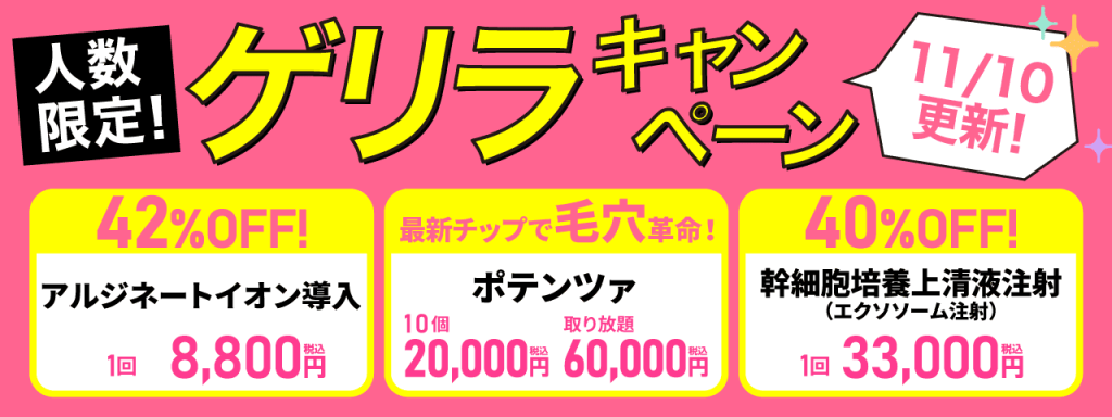 ニキビケアや医療脱毛、幹細胞治療まで男性向けにも幅広いメニューを取り揃えています。
