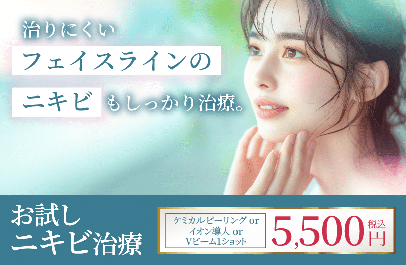 ニキビループは年代によって原因が異なります。早期治療を行わないと繰り返すことで肌質が悪化してしまいます。当院では肌質や体質を見定めた治療をご提案いたします。