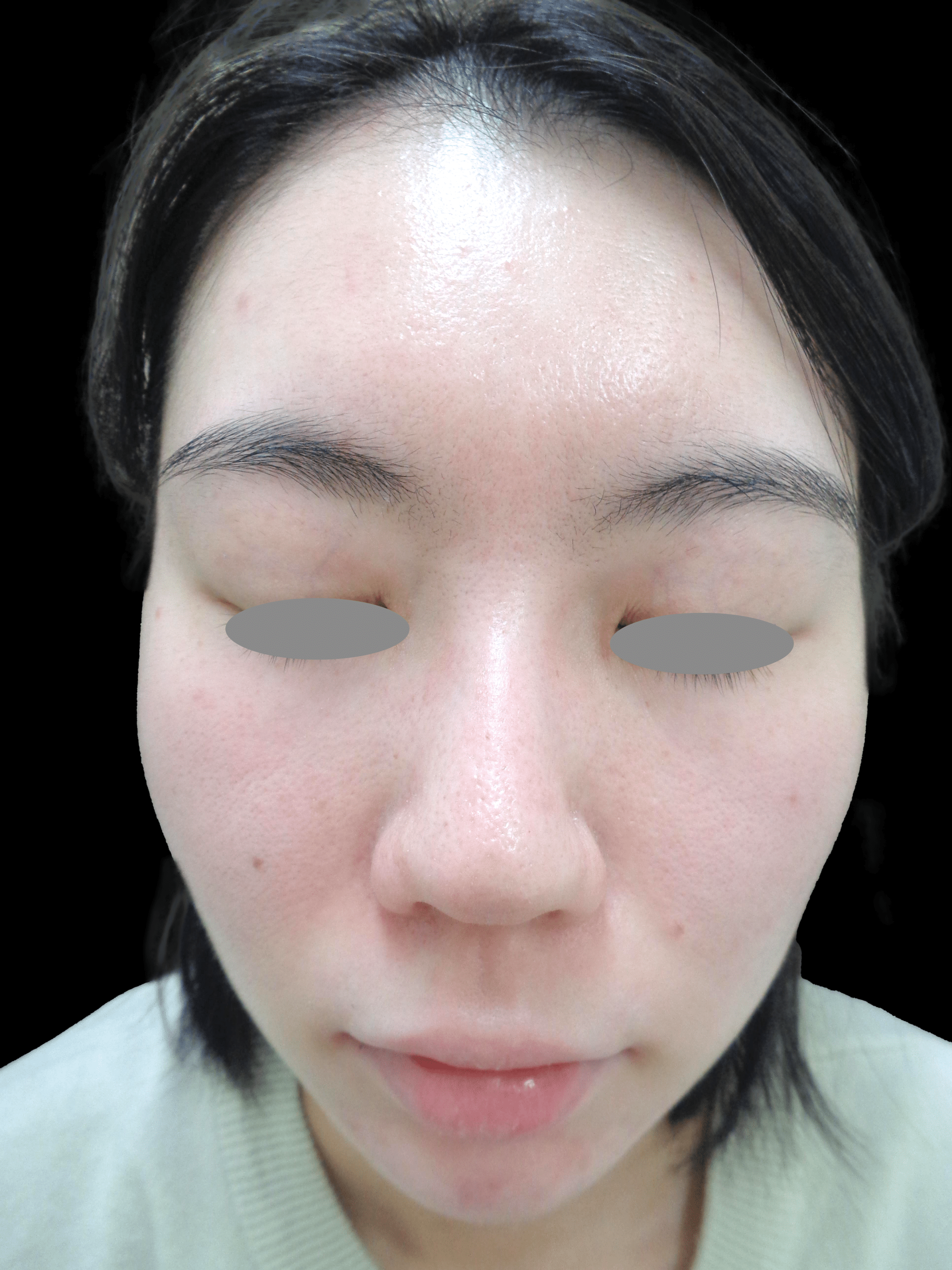 | 説明 | 赤ら顔の治療は、ポテンッァで毛細血管が存在する真皮層へ直接RF(ラジオ波)を照射し、赤ら顔の原因となる新生血管を抑制します。 2週間間隔で3回施術しました。赤みが引いているのが分かります。 |