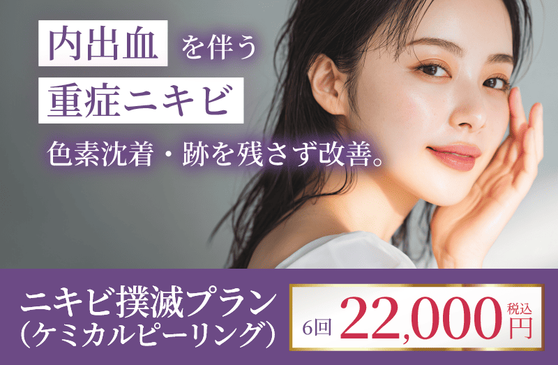 結論から言うと、紫ニキビは痕になりやすいため、見つけた時点で早めの治療を行うことが大切です。食事改善やスキンケアなどのセルフケアはもちろん重要ですが、それだけでの改善は難しい状態となっています。