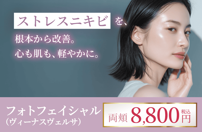 | ヴィーナスヴェルサ | IPLと呼ばれる特殊な光を照射する さまざまな肌トラブルを改善 | コラーゲンの生成を促す ニキビ、ニキビ跡の改善 赤ら顔、シミ、そばかす、毛穴の開きなどの改善 |
