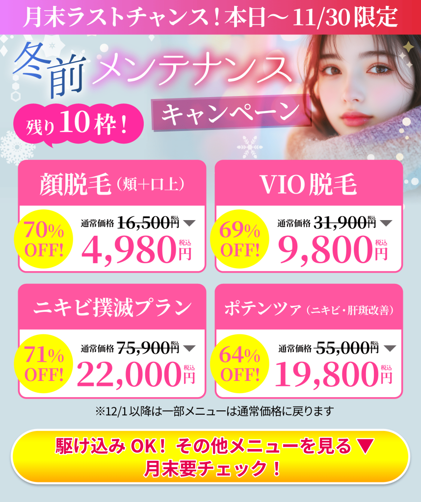 露出が少なくなる秋にお得に医療脱毛!
