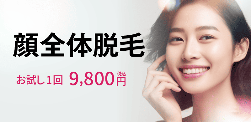 脱毛範囲 | 額(おでこ)、頬、鼻下、あご、あご下(首含まず)の顔全体 |