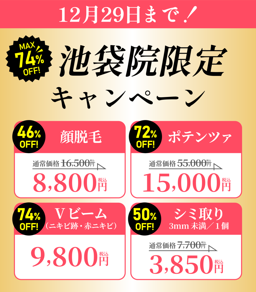 12/29までの期間に、施術まで受けて頂ければ