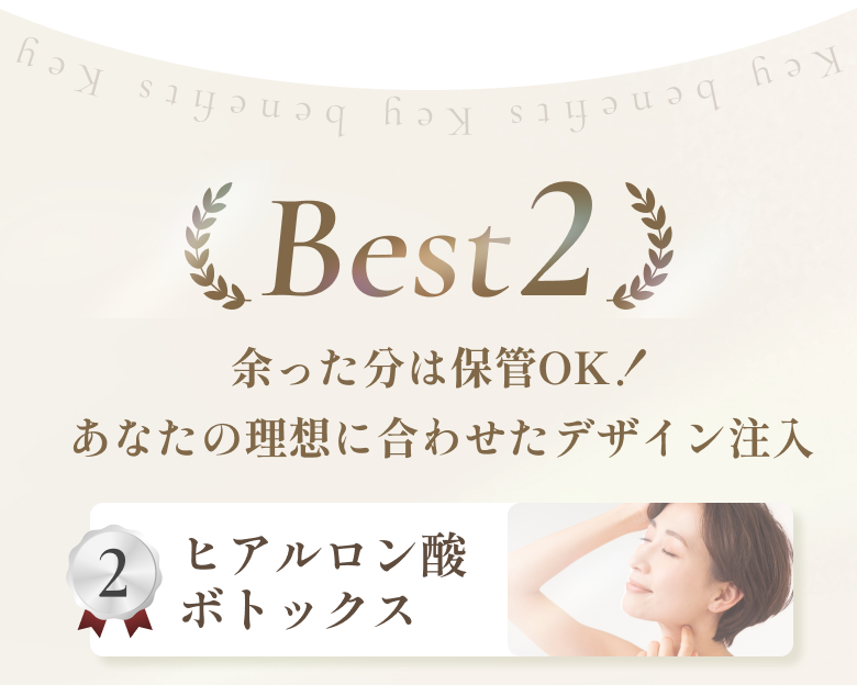 ヒアルロン酸、ボトックス、レーザー機器など、厚生労働省認可または実績のある信頼できる製品のみを使用しています。