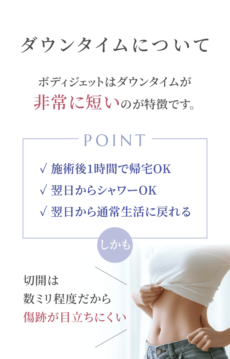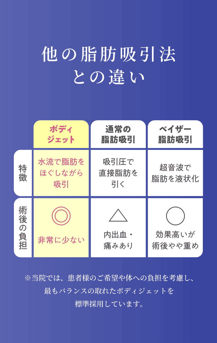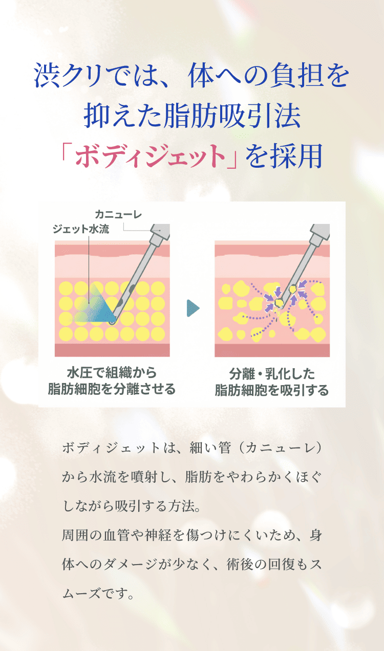 ジェット水流で体内の脂肪を優しく融解し効率よく吸引する施術