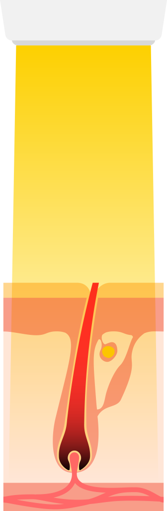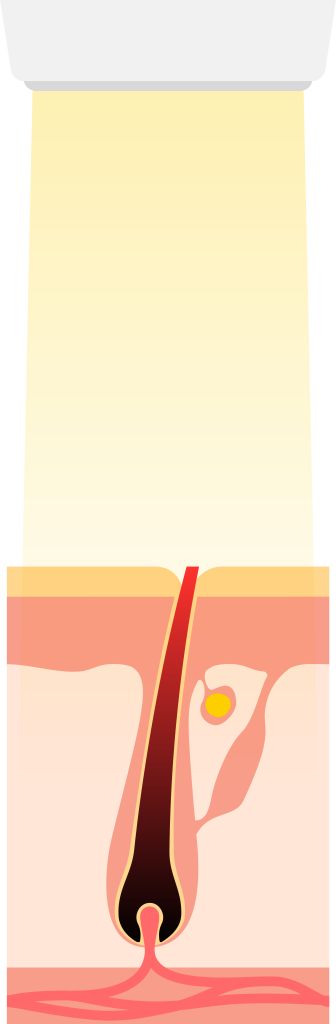 刺激を和らげる冷却ガスで冷やしながら、レーザーを照射します。 毛根に熱がこもった状態を維持すると効果が高まるので、施術後のクーリング(冷却)は基本的には行いません。