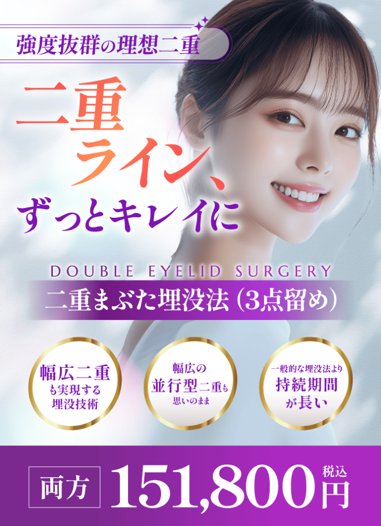 【二重まぶた埋没法(3点留め)】料金、種類について– 手軽な埋没法で自然で美しい二重まぶたを実現 –