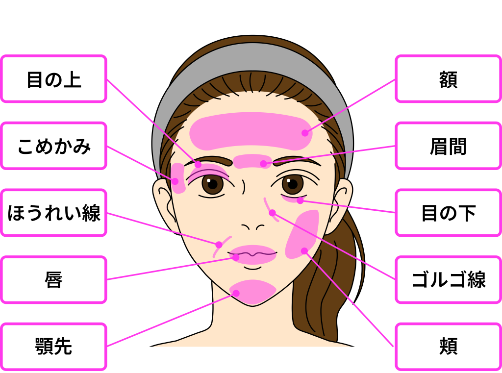 老け顔になる要因の一つが皮下脂肪の減少や位置の変化です。加齢によって脂肪が重力で下に移動したり、減少したりすることで、こめかみやおでこ、頬、目の下などにくぼみが目立ちやすくなります。