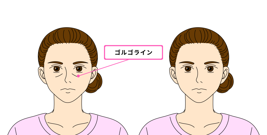 ゴルゴ線(ゴルゴライン)とは、頬の中心から目頭にかけてできる線のことです。線だけでなくくぼみができる場合もあります。