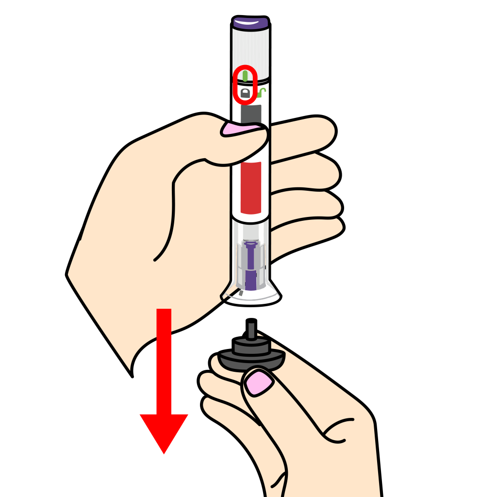 - ペンのグレーまたは白い外キャップをまっすぐ引いて外す