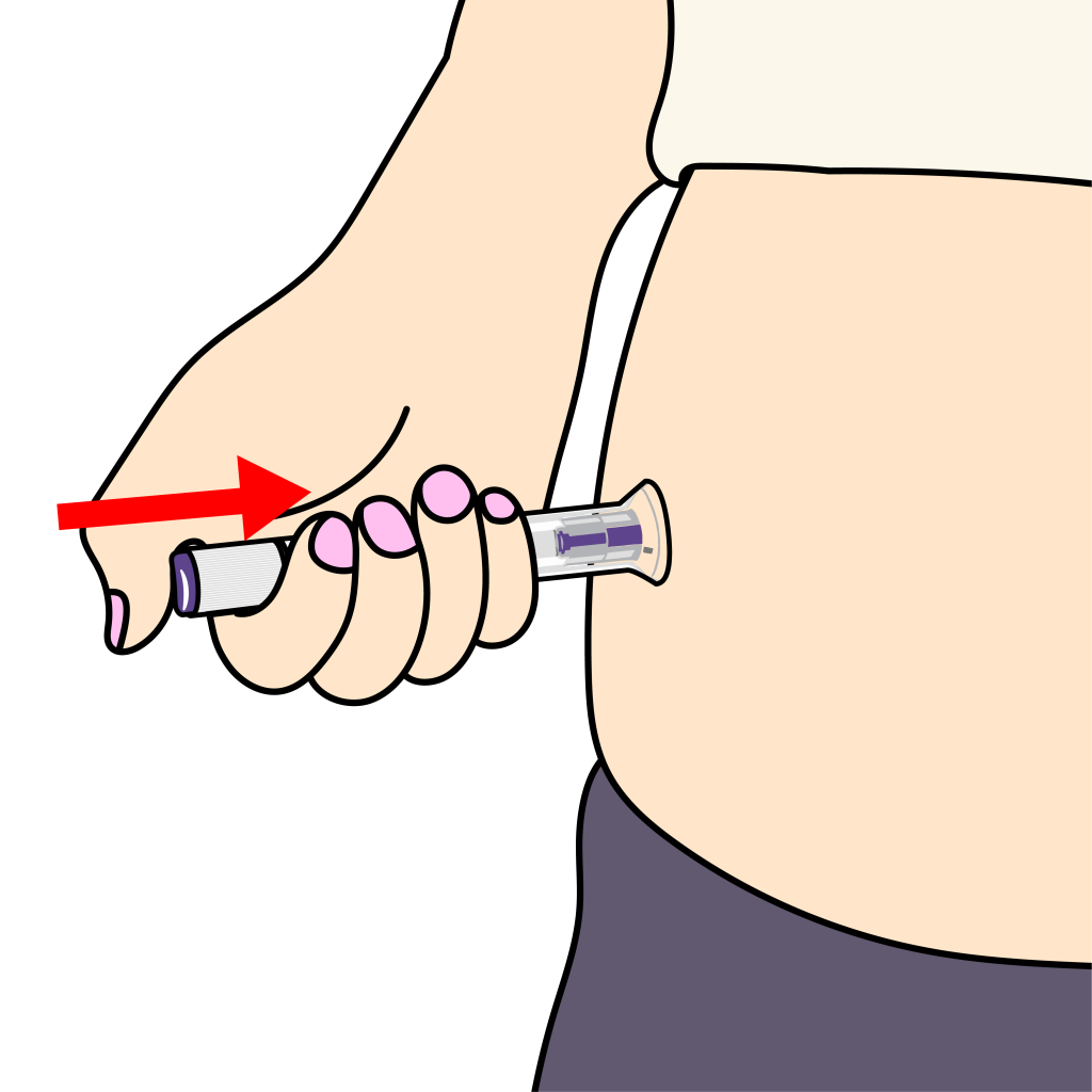 - 10秒間そのまま静止(薬が完全に注入されるまで)