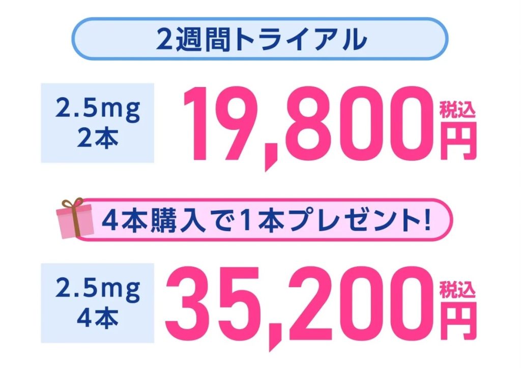 週1回ダイエット注射「マンジャロ」2.5mg 2本が19,800円、内服薬「リベルサス」3mg 30錠が11,000円の新規導入キャンペーン実施中!お得に始められます。