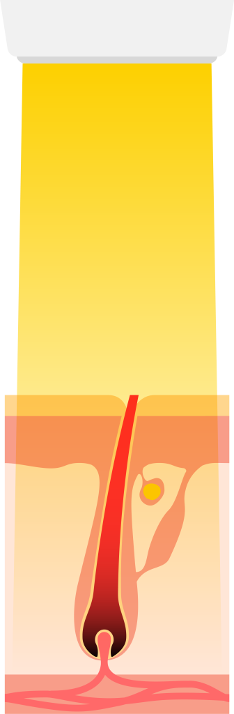 ヒゲにあるメラニン色素に反応するレーザーを使用し、毛母細胞や毛乳頭のバルジ領域にダメージを与えて脱毛します。発毛組織を破壊するため、5~8回と比較的少ない施術回数で効果が実感できるでしょう。