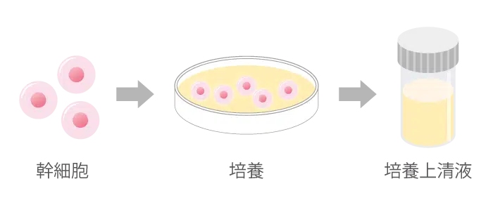 幹細胞培養上清液には、免疫細胞を活性化させるサイトカインや、細胞と情報のやり取りを行うエクソソームなどの有効成分が含まれています。幹細胞培養上清液を肌に届けることで、老化した細胞へ働きかけ、健康的な肌を取り戻す助けとなるのです。