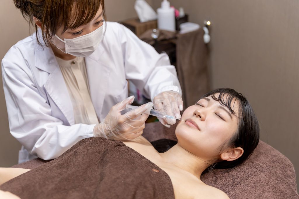 | 注意点 | 稀に注射部位に硬さや凹凸感を感じる場合がありますが、時間とともに自然に馴染みます。 施術当日は長時間の入浴・激しい運動・飲酒を控えてください。 妊娠中・授乳中の方は施術をお控えください。 |