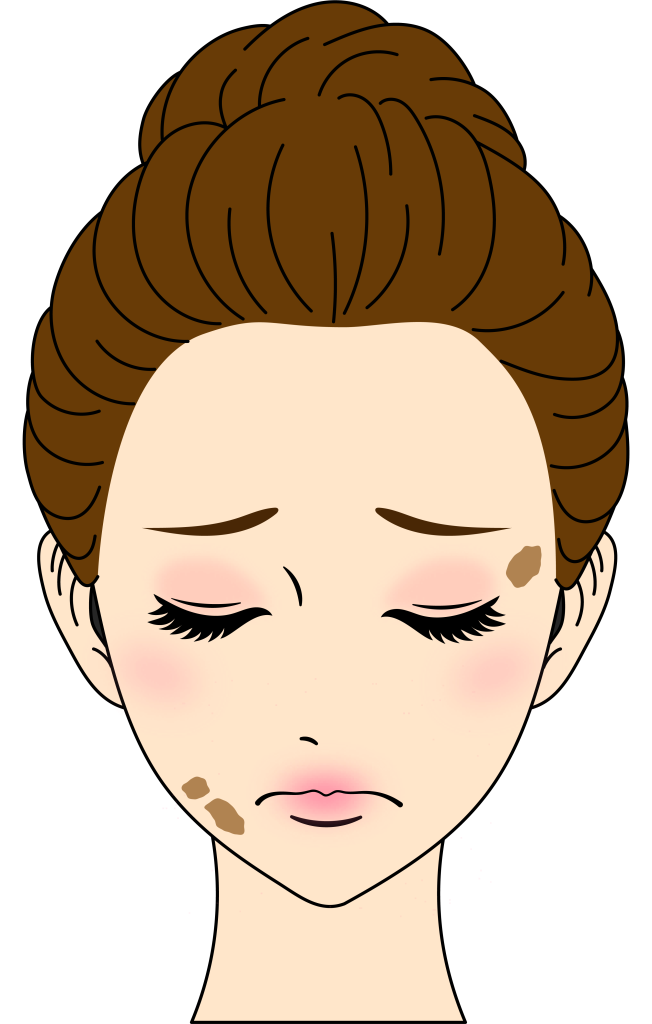 下まぶたやこめかみ、頬、鼻筋にできやすく、均等に広がる点が特徴的です。詳しい原因は不明ですが、他のシミと同様に紫外線や摩擦など肌へのダメージが増悪につながる可能性があります。