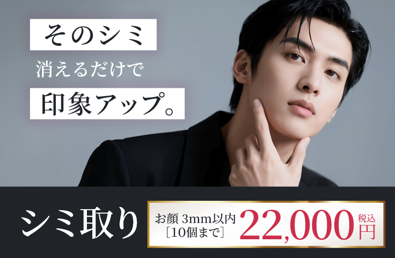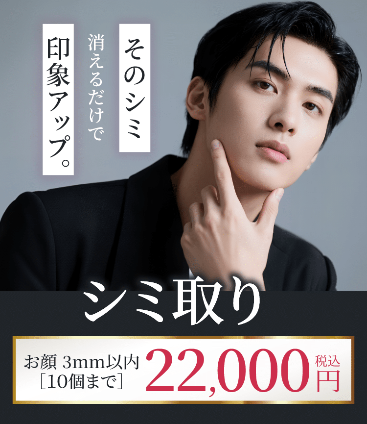 近年では男性の美容意識が高まっており、シミやニキビなどを治したいという男性は増えてきています。シミがあると実年齢より老けて見られることもありますので、身だしなみの一環としてもシミ取りはおすすめです。