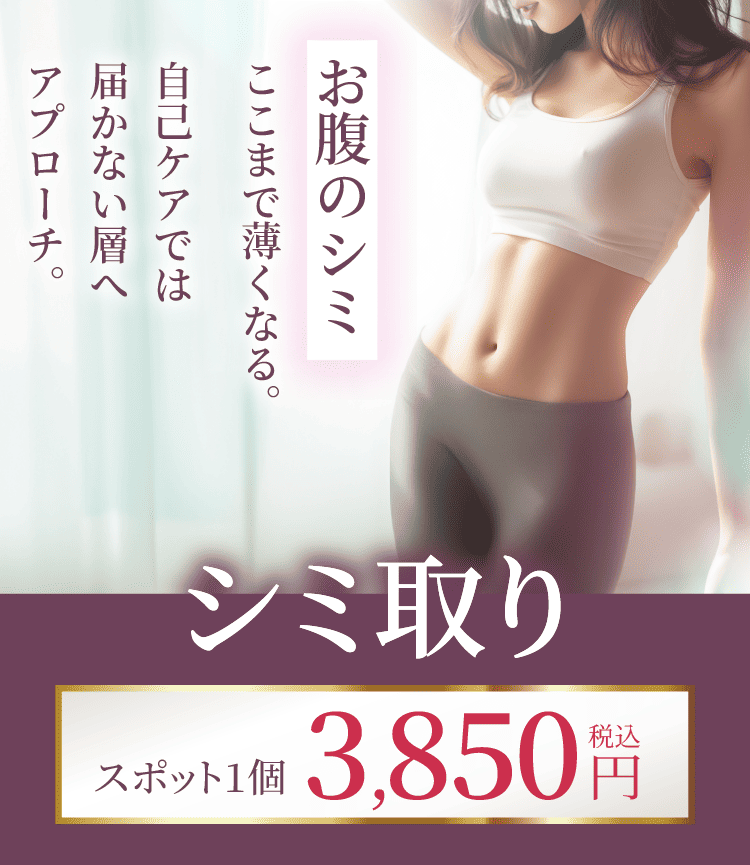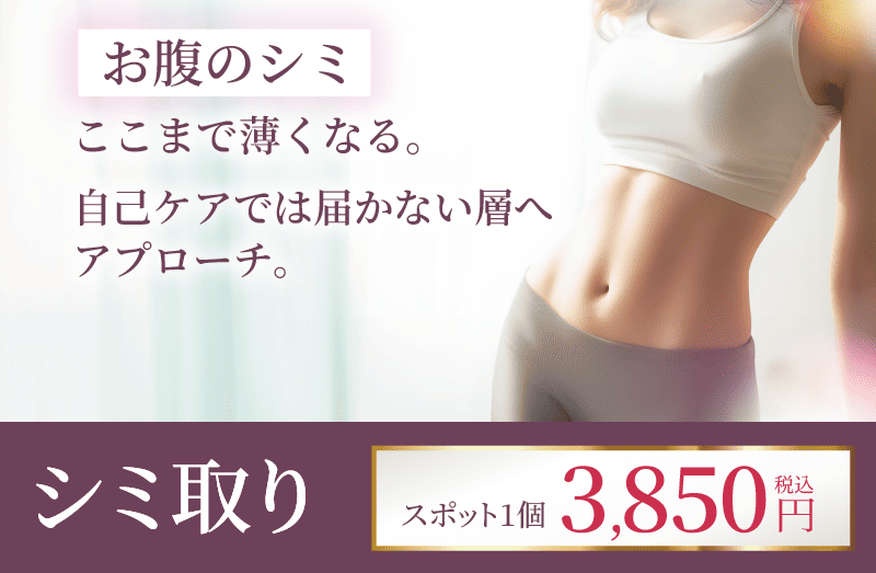 お腹のシミは衣類の締め付けにより発生することがあります。